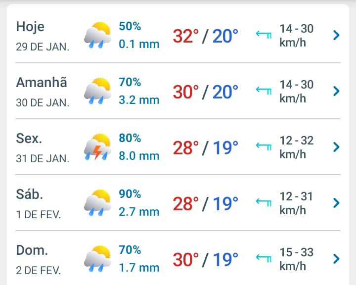 LAPÃO: PREVISÃO 29/JAN A 02/FEV