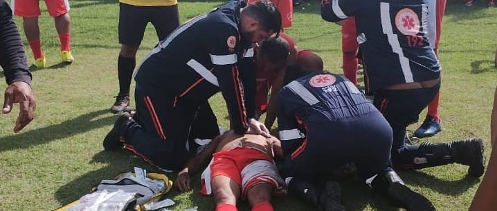 Neto Preto em atendimento dentro de campo em LEM.